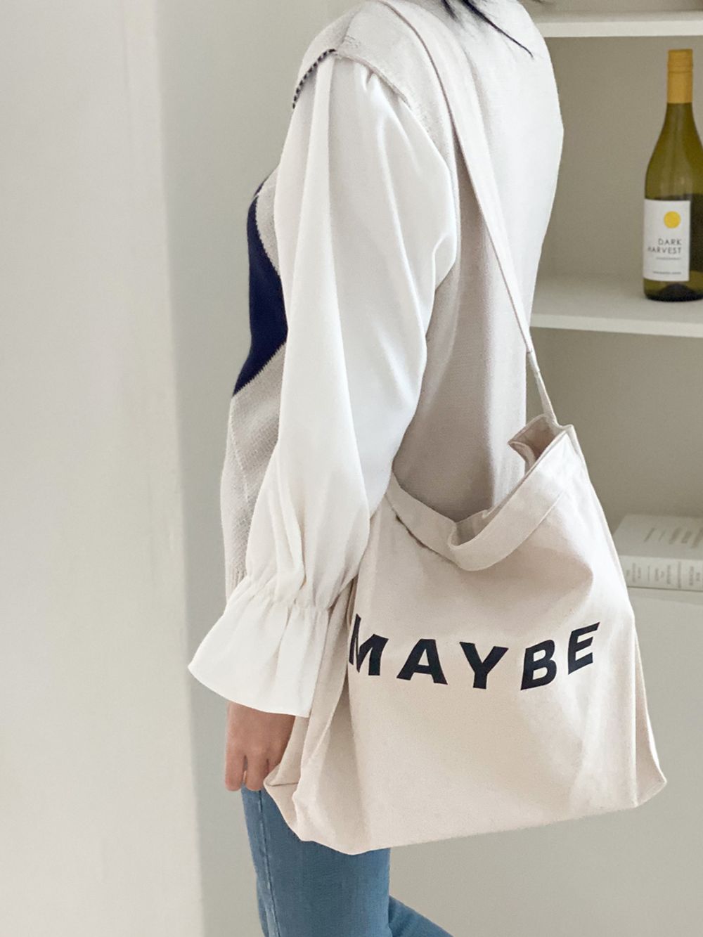 - 'MAYBE' 프린팅을 제품 전면에 넣어 캐주얼한 느낌을 살렸습니다.