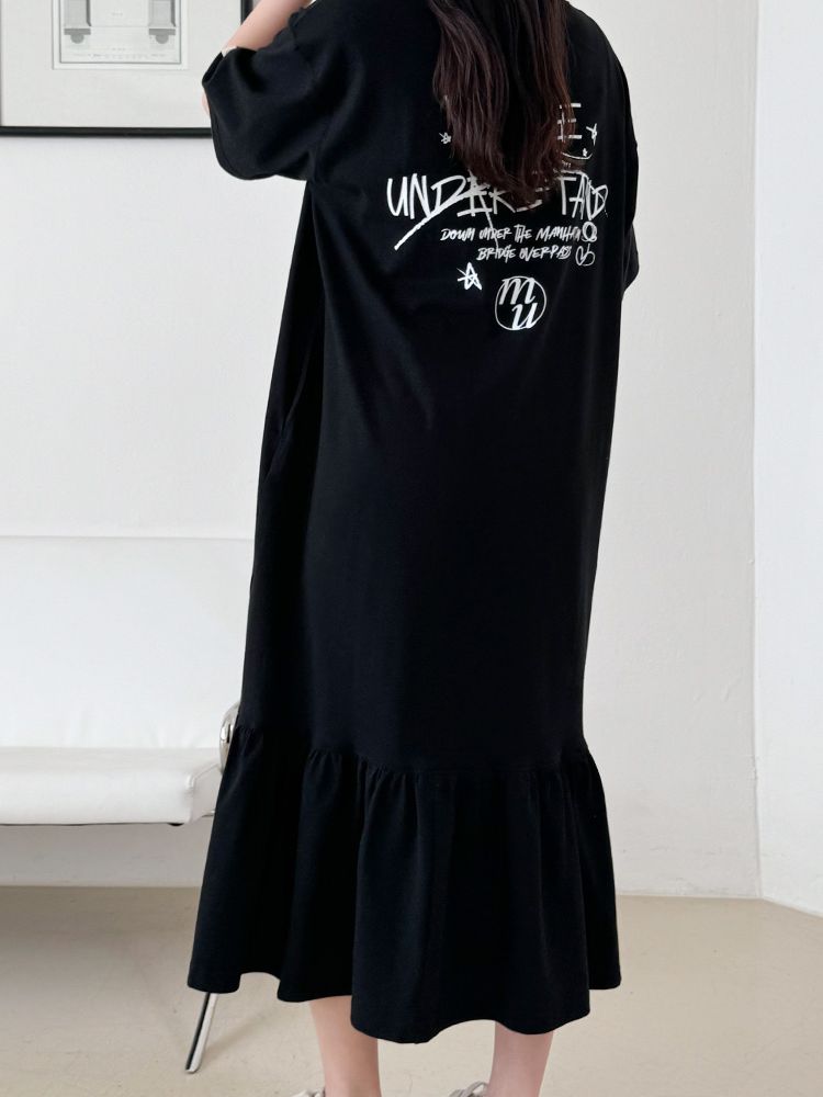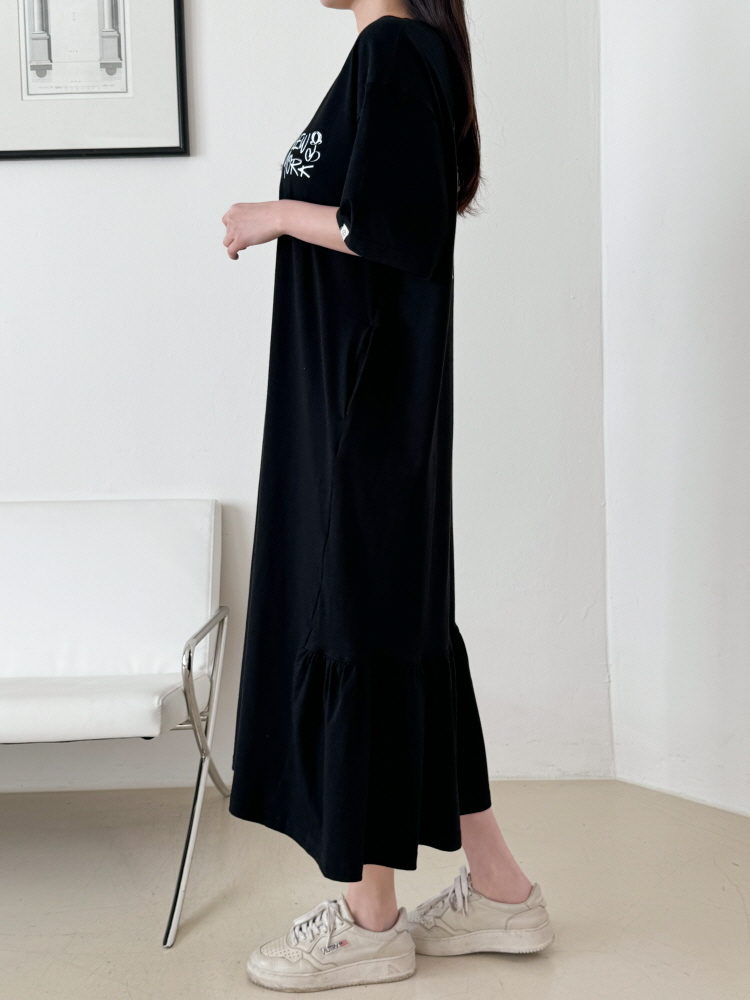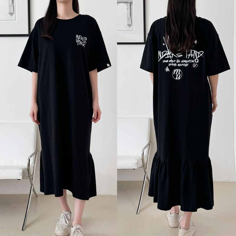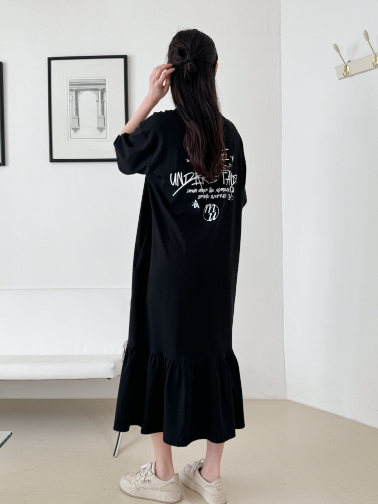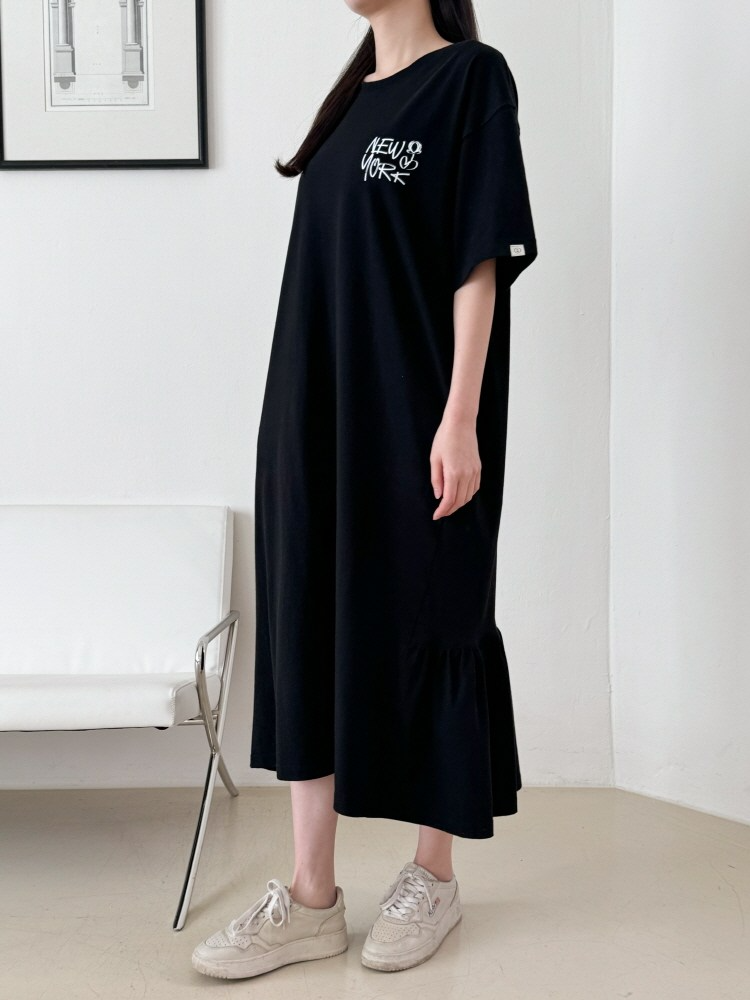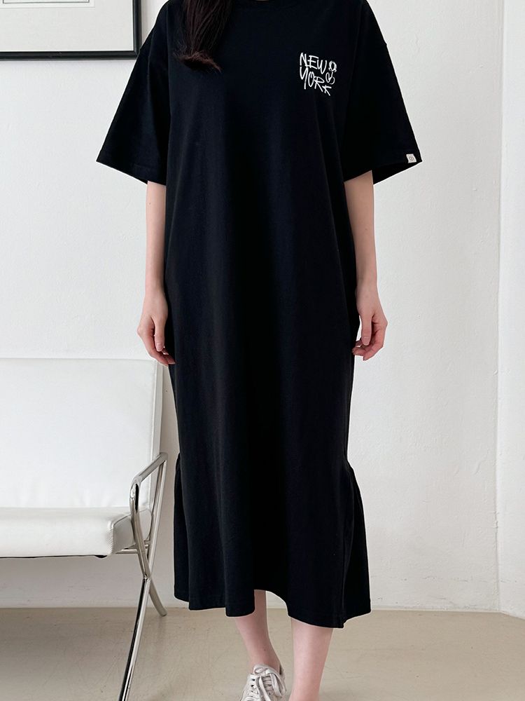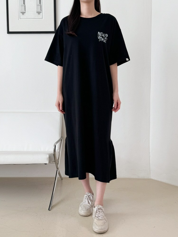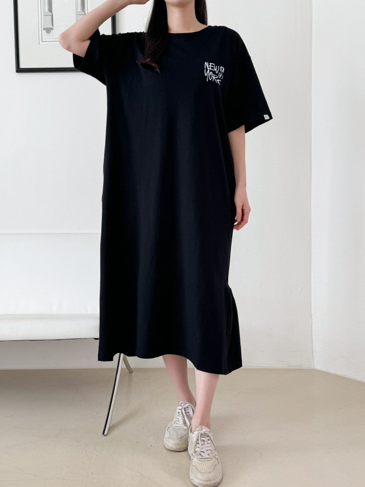 MU Newyork Cotton short-sleeve long dress BlackSALE