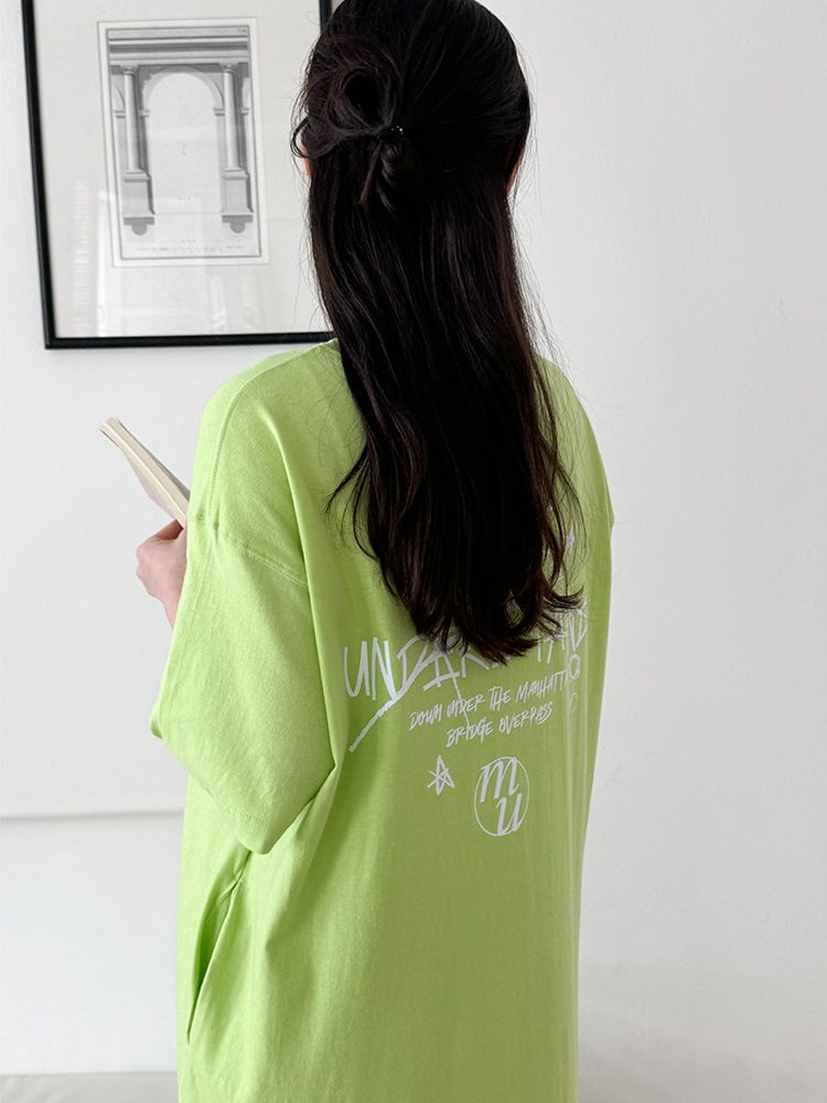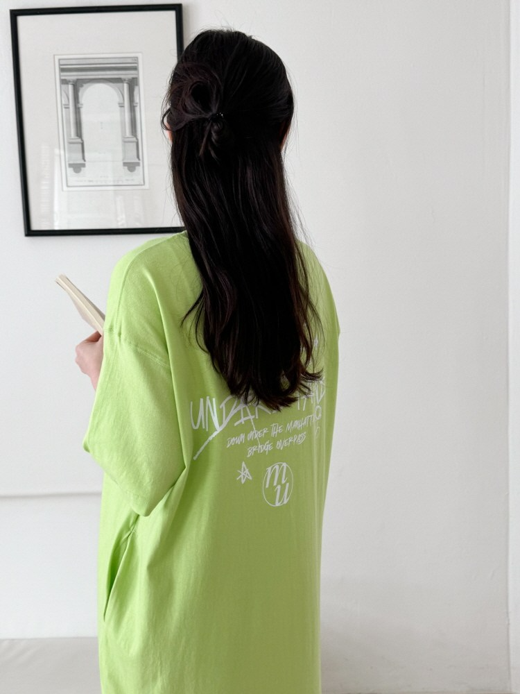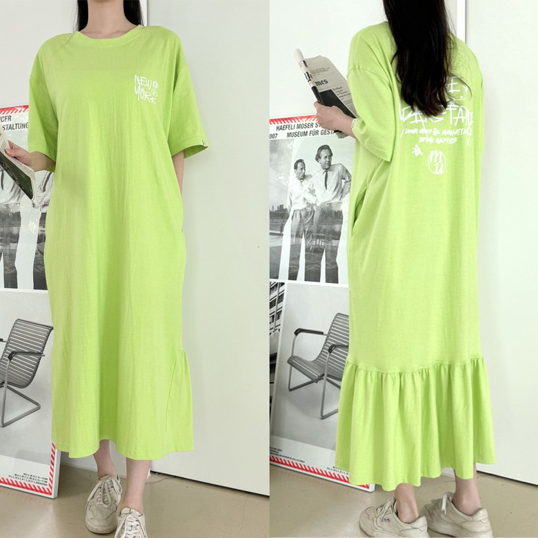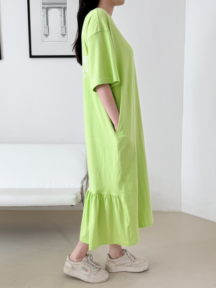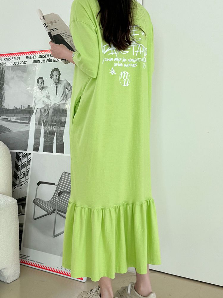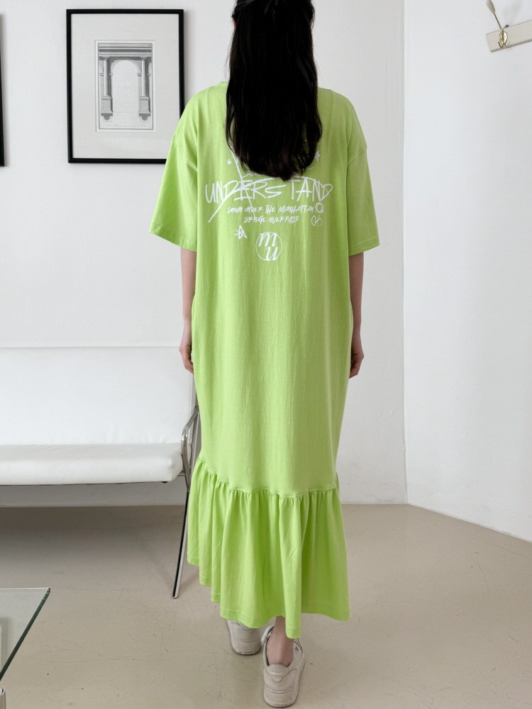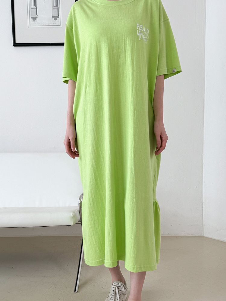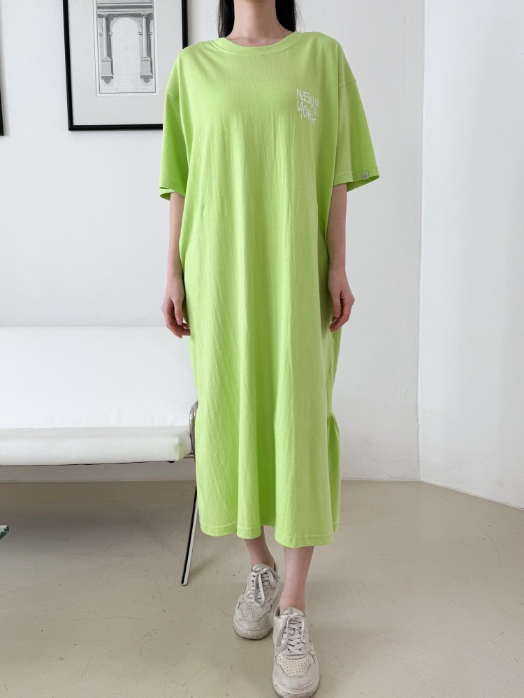MU Newyork Cotton short-sleeve long dress NeonSALE