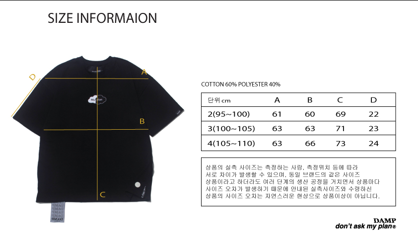 *면은 열에 수축하는 성질이 있어 건조기 사용을 자제하는 것이 좋습니다. - 디자인 포인트: 제품 옆선에 돈애스크마이플랜 스트랩을 디자인 포인트로 적용하여, 반팔 티셔츠에서 보기 드문 매력적인 디테일로 제작했습니다.