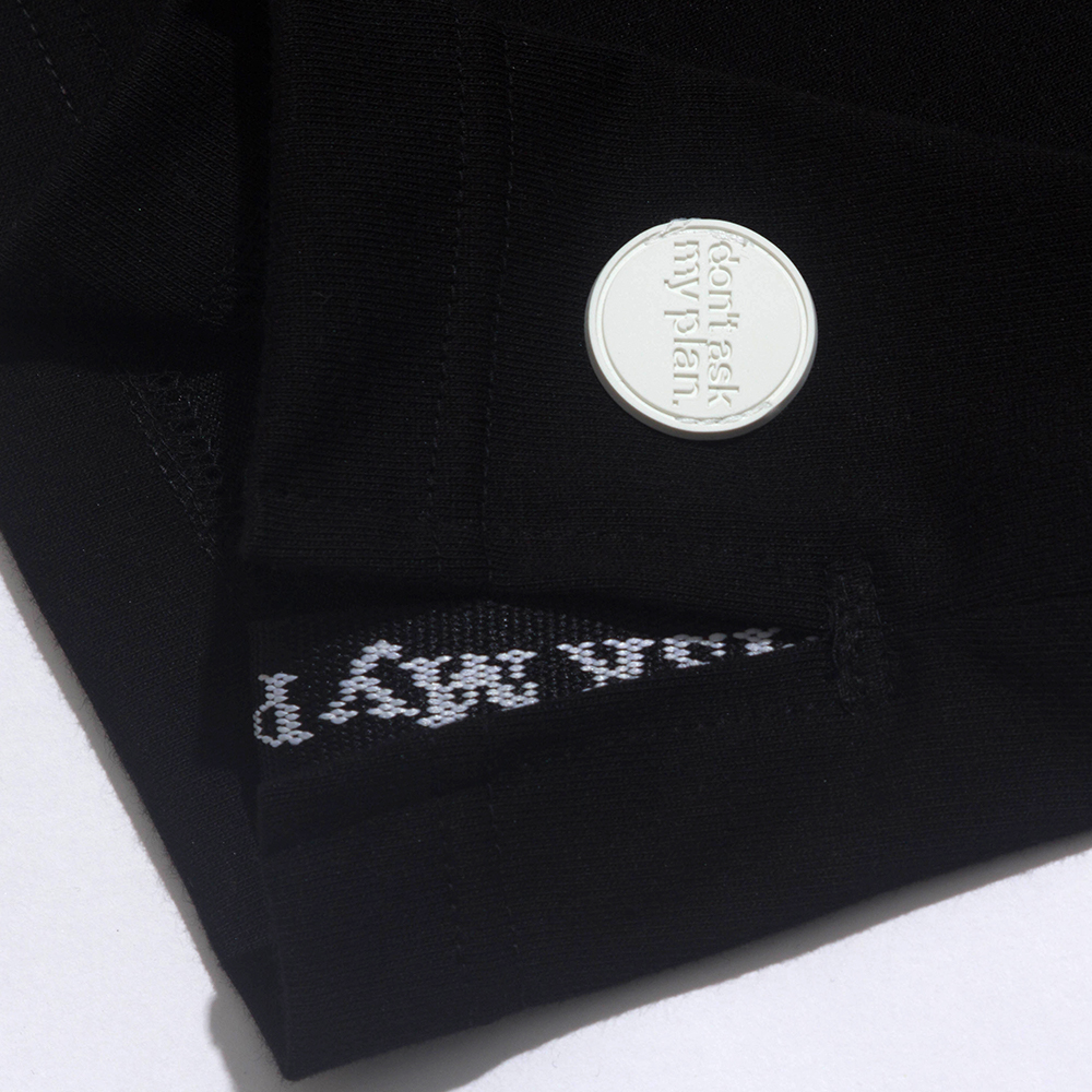 - 라벨: 2017 A/W 시즌부터 제품의 왼쪽 뒷면에 봉제 되기 시작한 'Tail label'은 시즌을 거듭할수록 발전되었습니다. 처음에 Don't Ask My Plan의 상징으로 일반 라벨 소재로 제작되었다가 라벨이 빠르게 상하는 것을 우려하는 고객분들이 늘어 코팅하여 더욱 단단하게 작업을 하였습니다. 하지만 나염이라는 특성상 라벨이 빨면 빨수록 프린팅이 지워지는 것을 안타까워하는 고객분들이 많아져 현재는 직접 실을 짜서 만들어진 직조라벨로 발전되어 더욱 고급스럽고 지워지지 않는 'Tail Label'이 되었습니다. 'Tail label' 가위 모양을 따라 원하지 않으시면 제거할 수 있으며 제거한 라벨로 책갈피 및 다양한 용도로 사용 가능합니다.