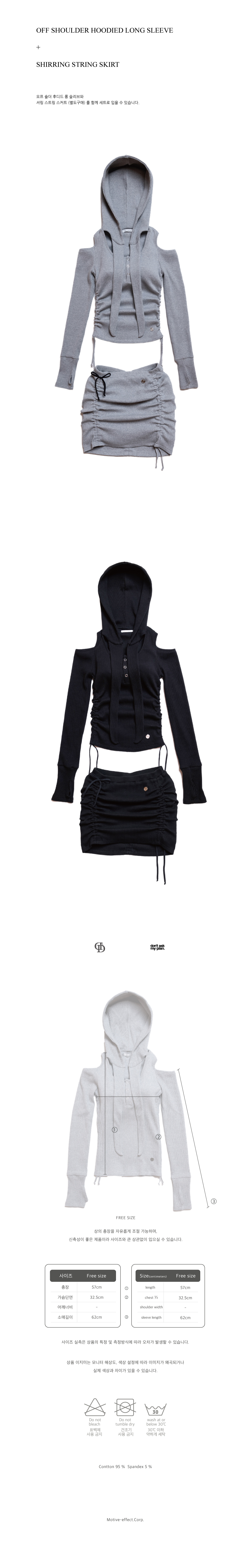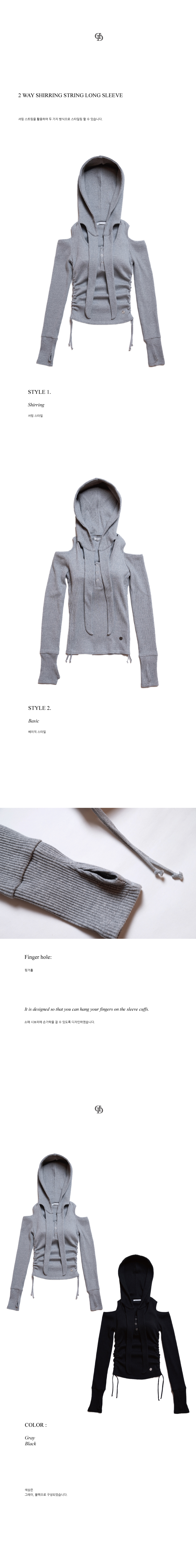 - FINGER HOLE: 소매 시보리에 손가락을 걸 수 있도록 디자인하였습니다.