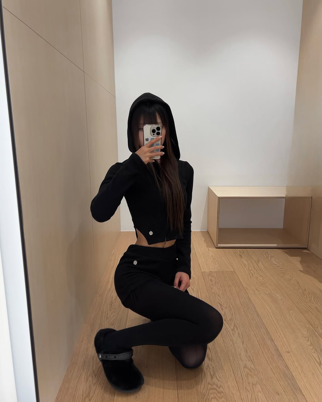 SWAN LAKE CROP 2WAY ZIP UP HOODY BLACK