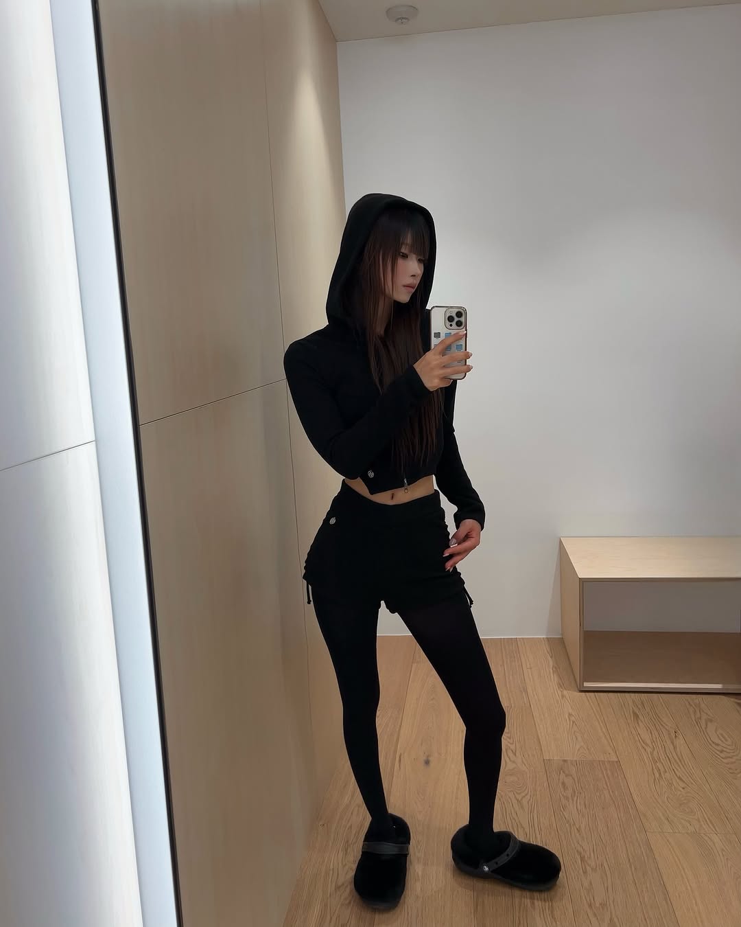 SWAN LAKE CROP 2WAY ZIP UP HOODY BLACK 돈애스크마이플랜 스완 레이크 크롭 2웨이 집업 후드_블랙 SWAN LAKE SHRRING STRING MICROSHORTS BLACK 돈애스크마이플랜 스완 레이크 셔링 스트링 마이크로쇼츠_블랙