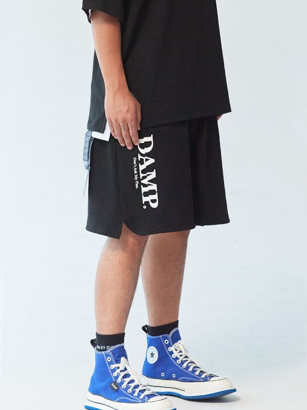 DAMP CLASSIC LOGO WIDE SWEAT SHORTS_BLACK