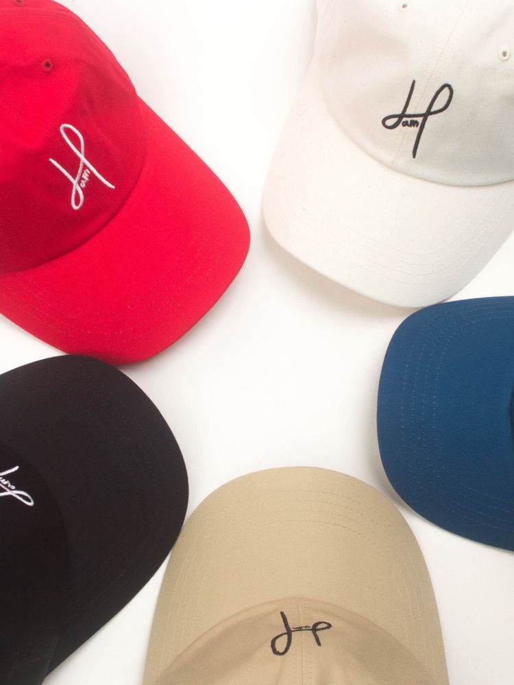 시그니처 로고 자수: 시그니처 로고는 DAMP(Don't Ask My Plan)의 D 와 P가 자연스럽게 연결된 필기체로 표현한 디자인입니다. 모자의 앞부분에 최적의 굵기로 시그니처로고의 느낌을 사틴 자수로 표현하였습니다.