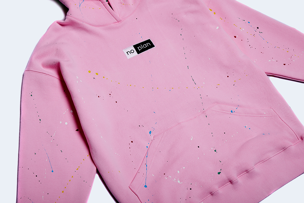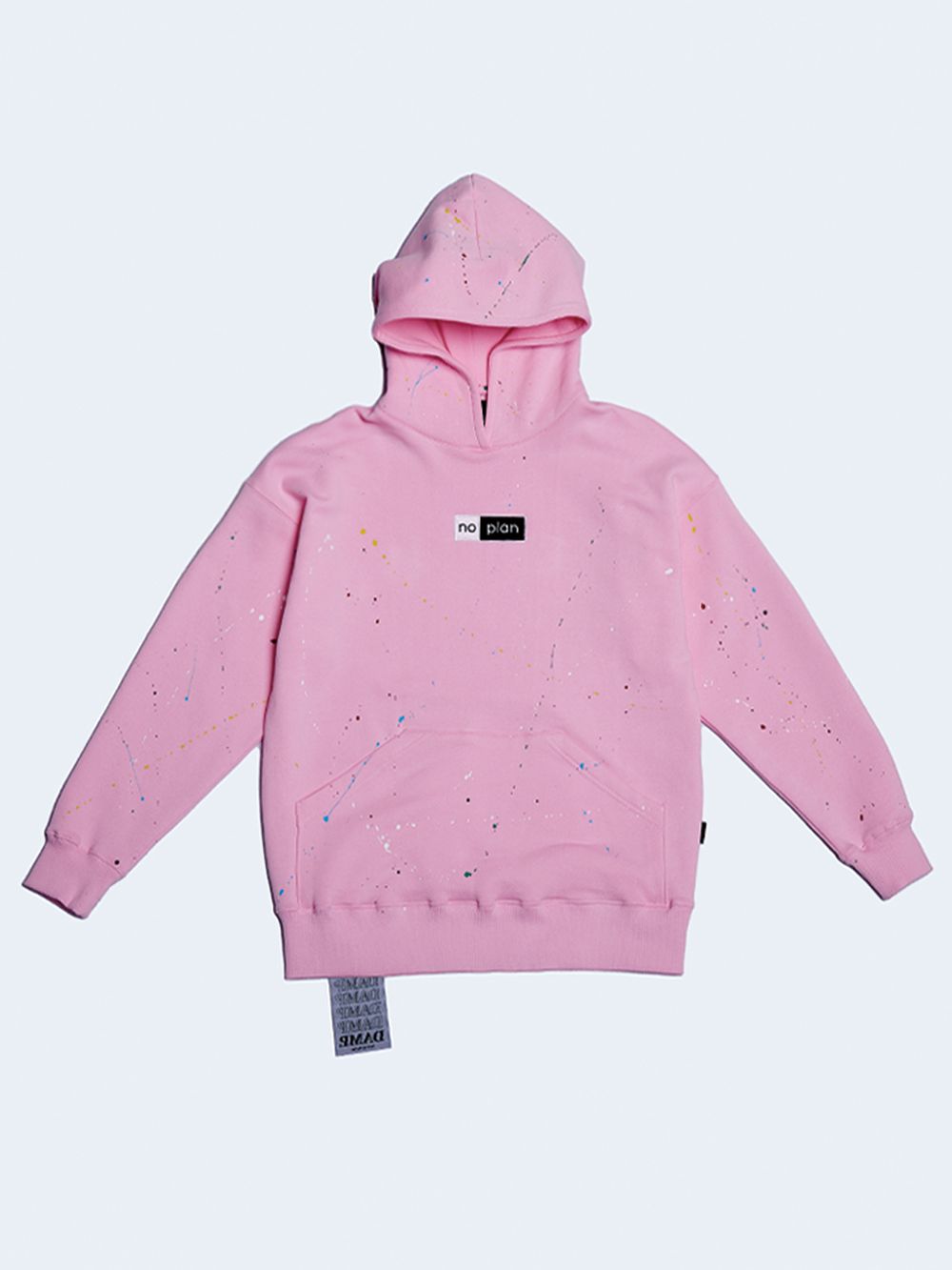 [마지막 한 장] NO PLAN BOX LOGO PAINT DROP HOODY_PINK