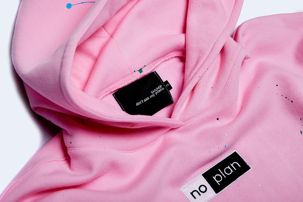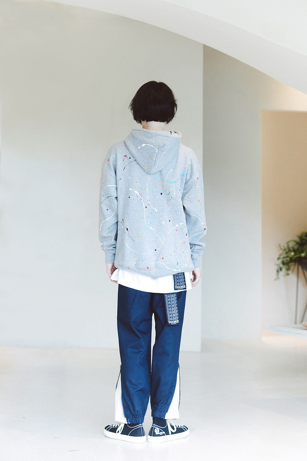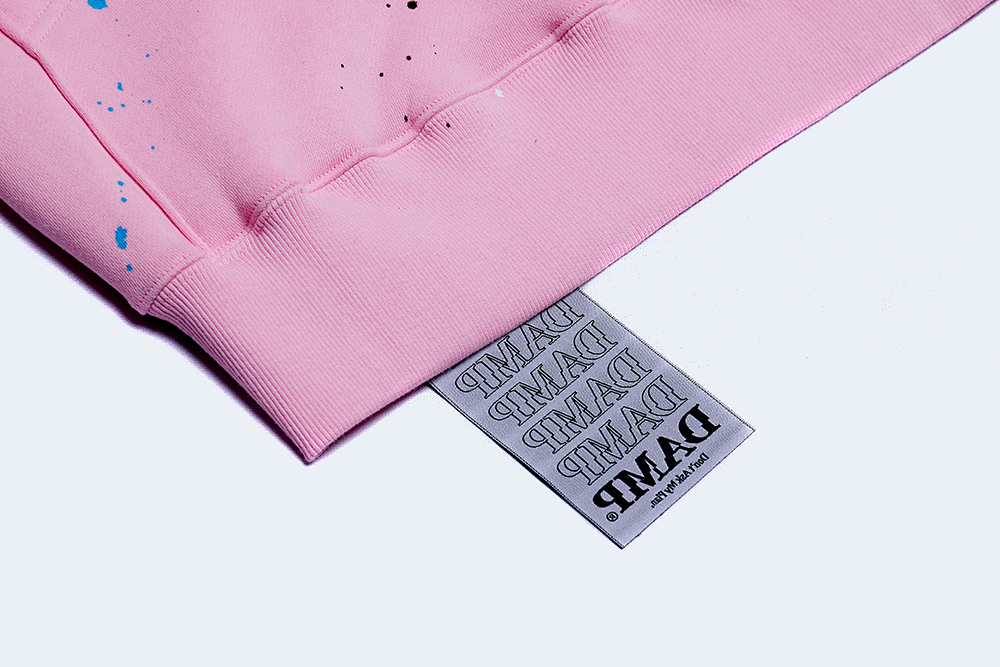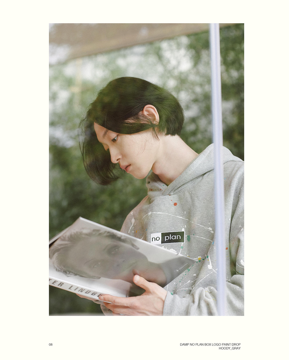 - 디자인: 돈애스크마이플랜 스테디 셀러 제품 '노플랜 박스로고 후디'에 댐프만의 자유롭고 독특한 감성을 나타내는 페인트 드랍 디자인을 적용했습니다. 디자이너가 직접 수작업으로 페인팅 작업을 진행하여, 대량생산에서는 볼 수 없는 불규칙적이고 유니크한 페인트 디자인이 특징입니다.