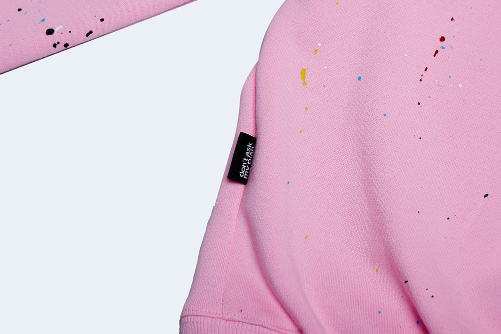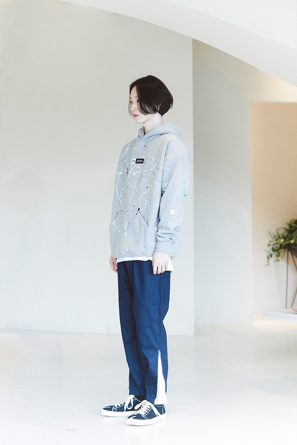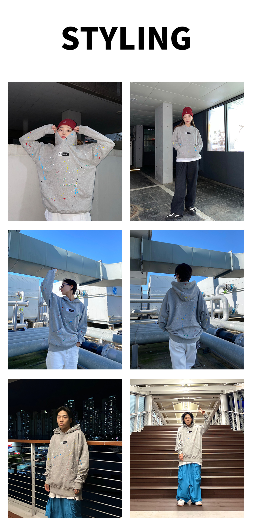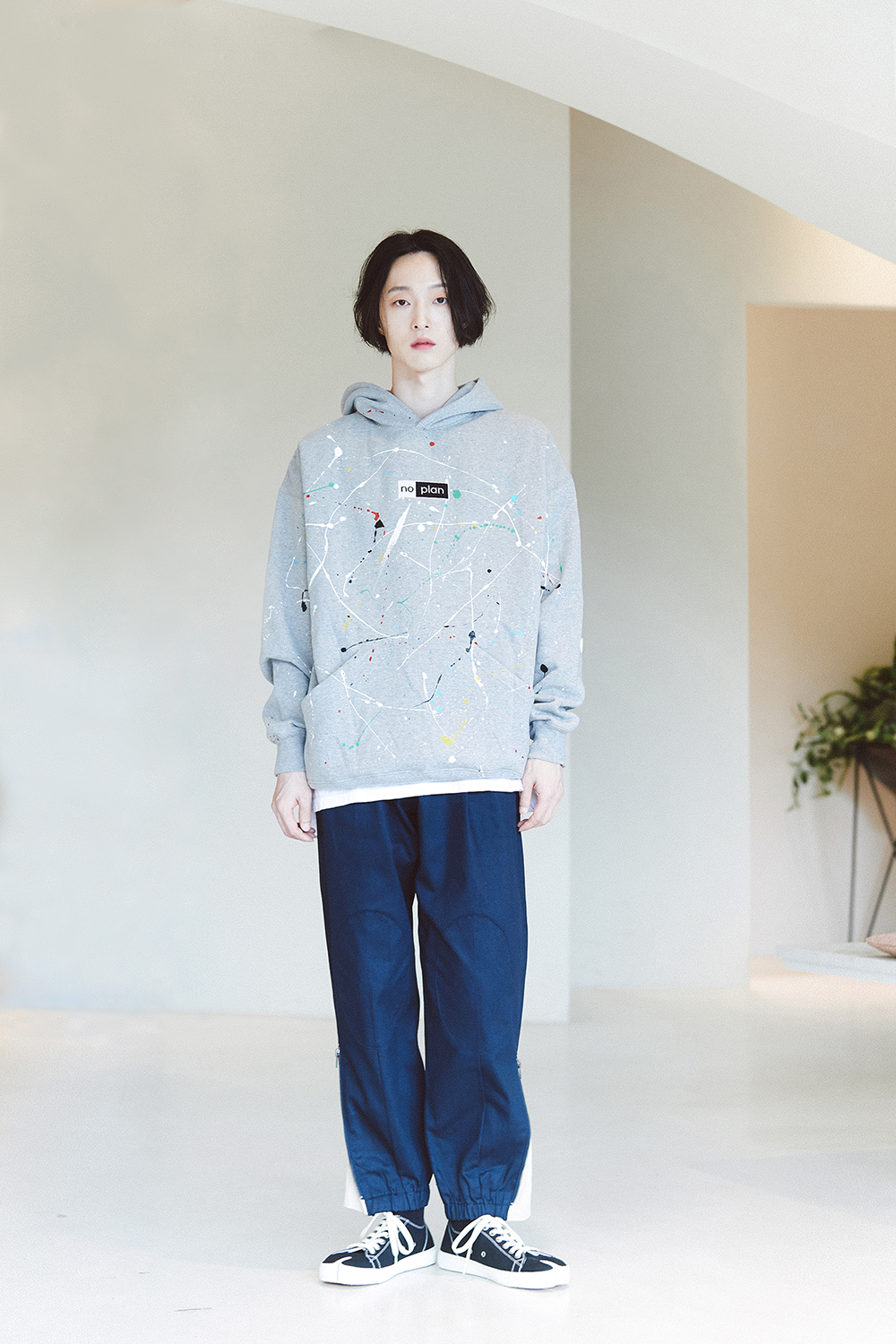 - 디자인: 돈애스크마이플랜 스테디 셀러 제품 '노플랜 박스로고 후디'에 댐프만의 자유롭고 독특한 감성을 나타내는 페인트 드랍 디자인을 적용했습니다. 디자이너가 직접 수작업으로 페인팅 작업을 진행하여, 대량생산에서는 볼 수 없는 불규칙적이고 유니크한 페인트 디자인이 특징입니다.