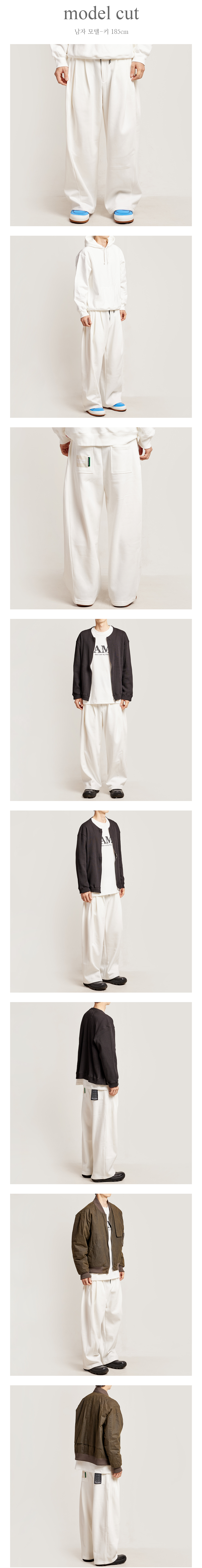 - 핏: 남여공용으로 제작된 스웻 팬츠는 와이드 핏으로 제작되어 활동성이 좋으며, 다양한 스타일과 매치하기 좋은 디자인입니다. 또한, 알맞은 피트감을 허리에 주기 위해 주로 비즈니스형 바지에 쓰이는 원턱 디자인을 바지에 적용했습니다.