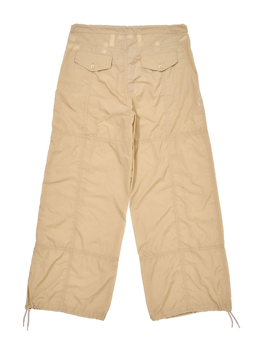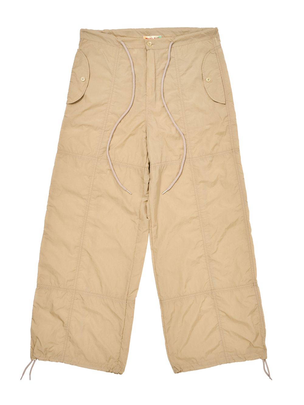 - 핏: 남여공용으로 제작된 파라슈트 팬츠는 와이드 핏으로 제작되었으며, 허리 부분과 밑단에 스트링을 넣어 원하는 핏으로 조절이 가능합니다.