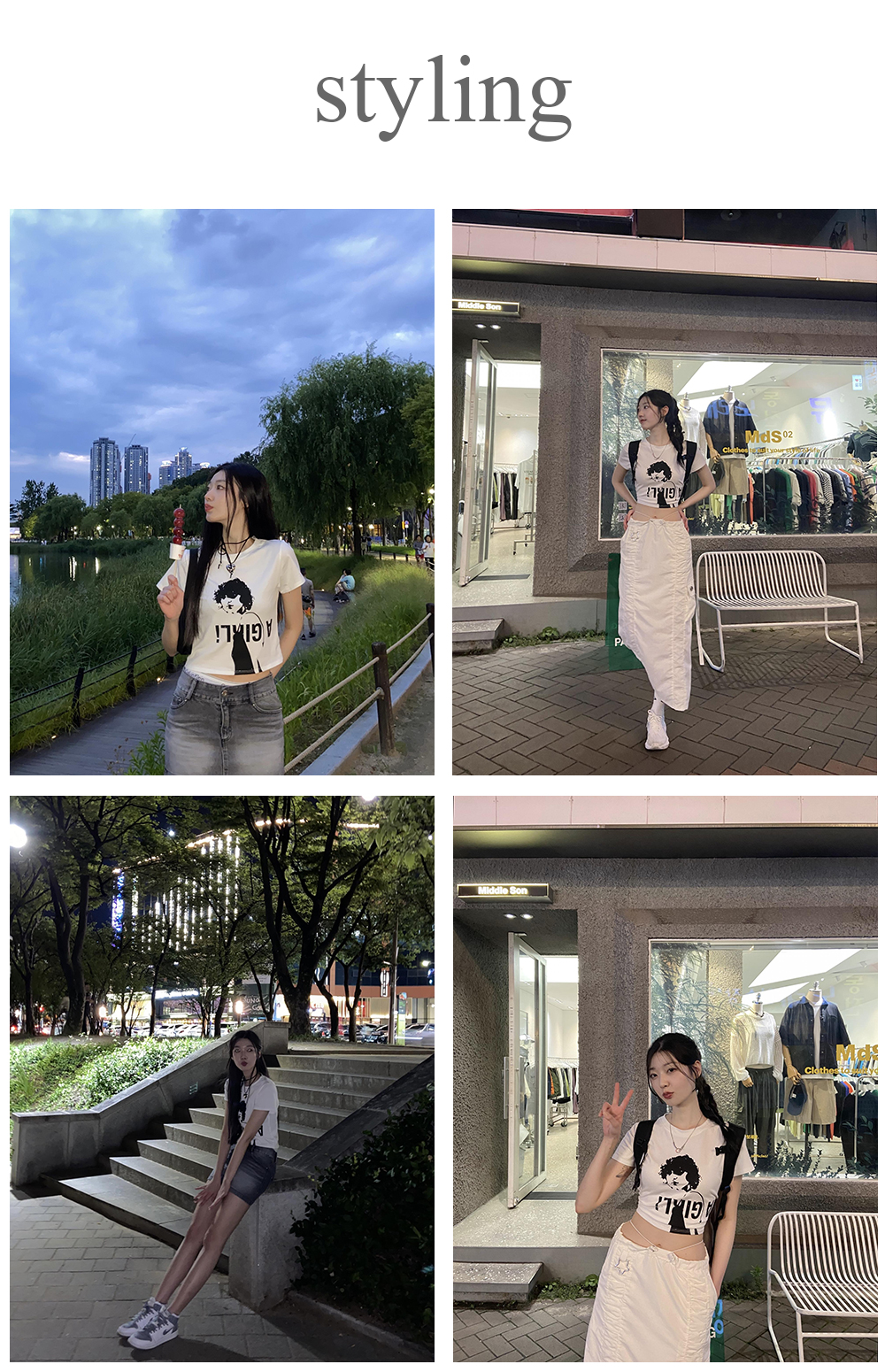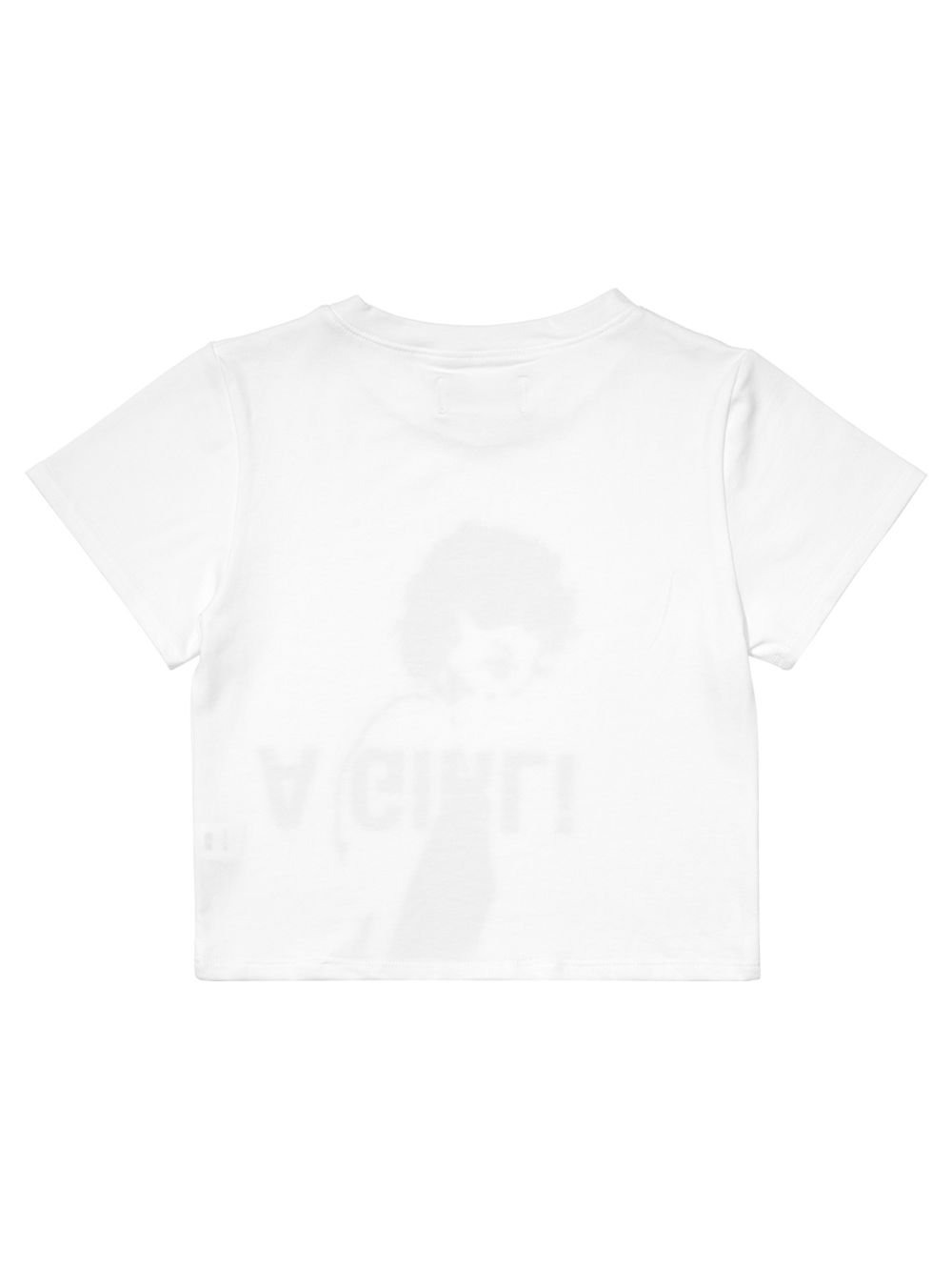 • 빈티지 무드의 프린팅이 매력적인 크롭 스타일의 반팔 티셔츠입니다.
