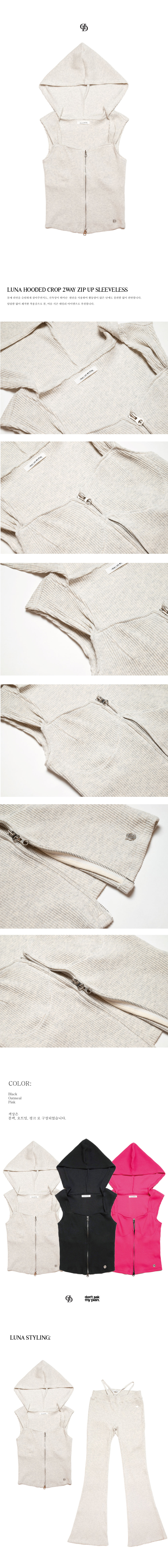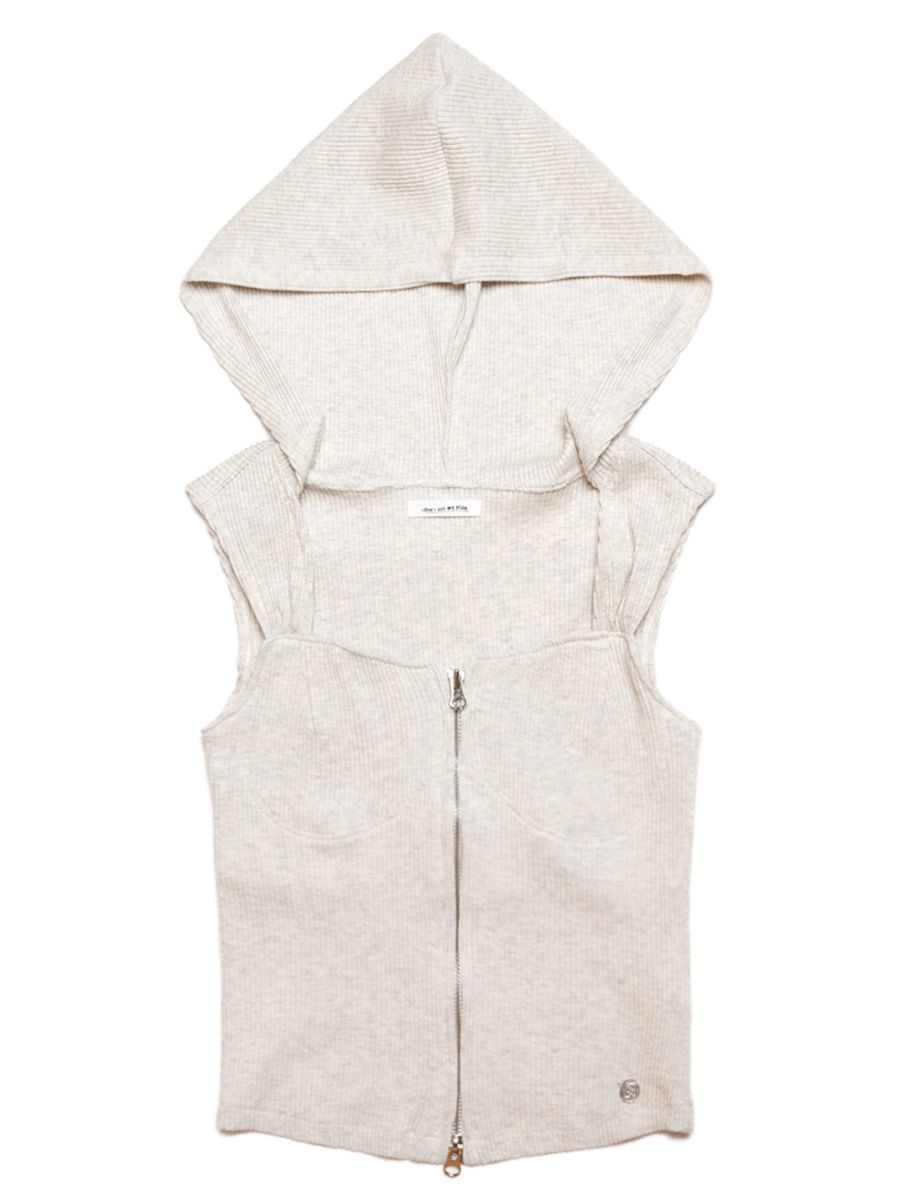 LUNA HOODED CROP 2WAY ZIP UP SLEEVELESS OATMEALSALE