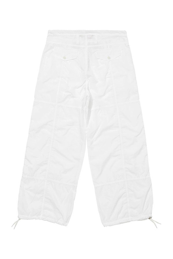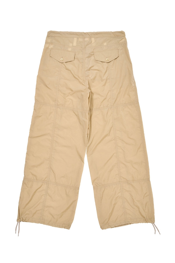- 핏: 남여공용으로 제작된 파라슈트 팬츠는 와이드 핏으로 제작되었으며, 허리 부분과 밑단에 스트링을 넣어 원하는 핏으로 조절이 가능합니다.